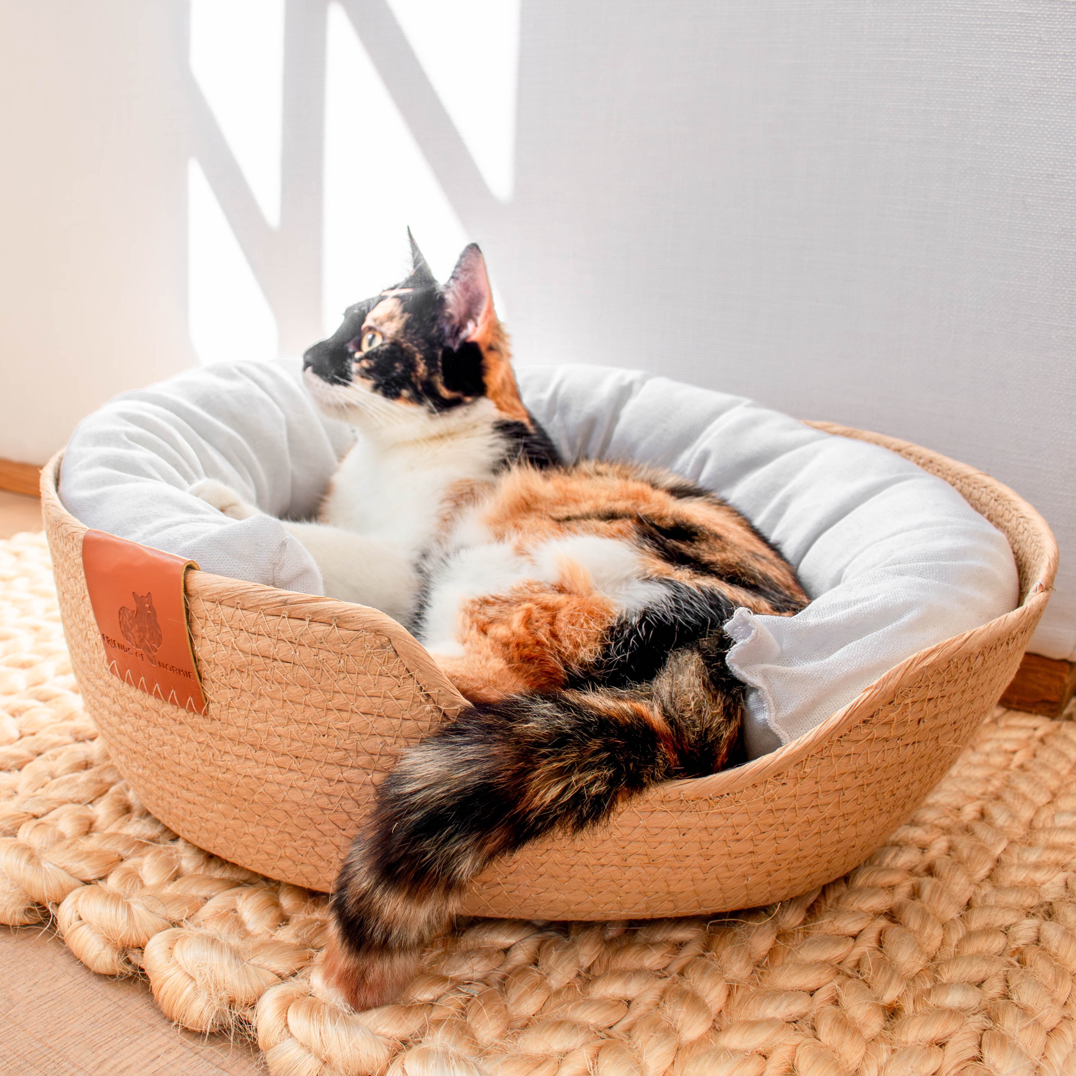 Our wicker cat bed partners comfort with versatility. With 3 pieces, you can choose how bundled in your cat wants to be. The cushions are made with breathable linen material and built to last. This cat bed delivers the demands of all cats, even those who don’t like soft surfaces. If you have a cat that doesn’t prefer a cozy feel, the cushions can be removed to leave your cat with a nice cool basket to lay in.